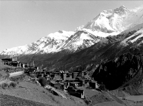 The first was the discipline of cultural anthropology. A twelfth-grade class in 20th c. religious thought led me to major in Asian Comparative Religion at Princeton which led me (after a year of traveling overland from Europe to Taiwan via Turkey, Iran, Afghanistan, Pakistan, India and Nepal) to a joint MA/PhD program at the University of California at Berkeley. Two and a half years living at 10,500’ in the village of Tengyi in the Manang Valley north of Annapurna (pictured below), taught me how to see the world through the eyes of people with different circumstances and values.